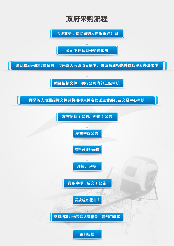 業務範圍:全國內各國家機關、事業單位、團體組織或使用財政性資金的貨物采購、購買服務以及建築物和構築物的新建、改建、擴建、裝修、拆除、修繕等工程類項目。