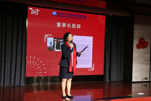 年會開場,由公司董事長陳清琳女士致新年致辭。她首先回顧了公司2017年的發展情況與輝煌的業績,並感謝所有給予正天支持的領導、客戶、家人,以及所有為公司付出努力的員工。同時,她還提到公司2017年的成績是正天曆史上的裏程碑。公司業績過千萬,正天的發展躍上了新高度,登上了新平台。我們要不忘正天精神,無懼挑戰,在2018年迎接更大的發展。