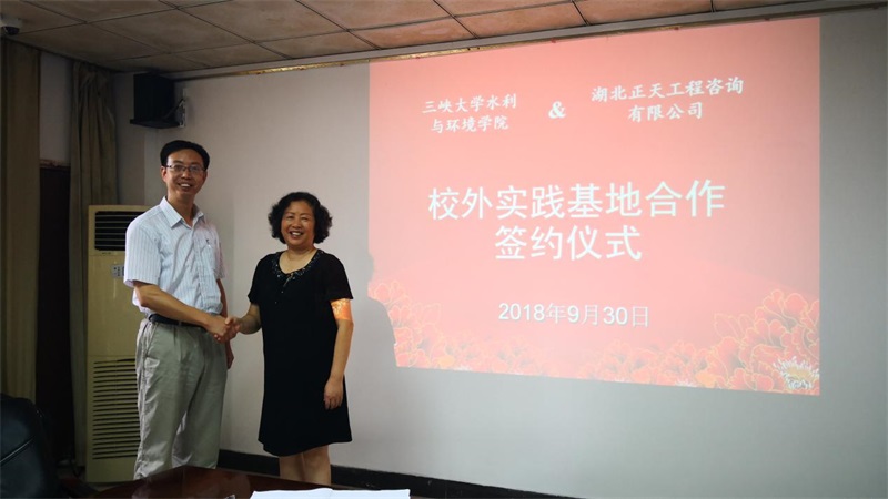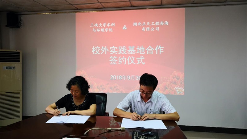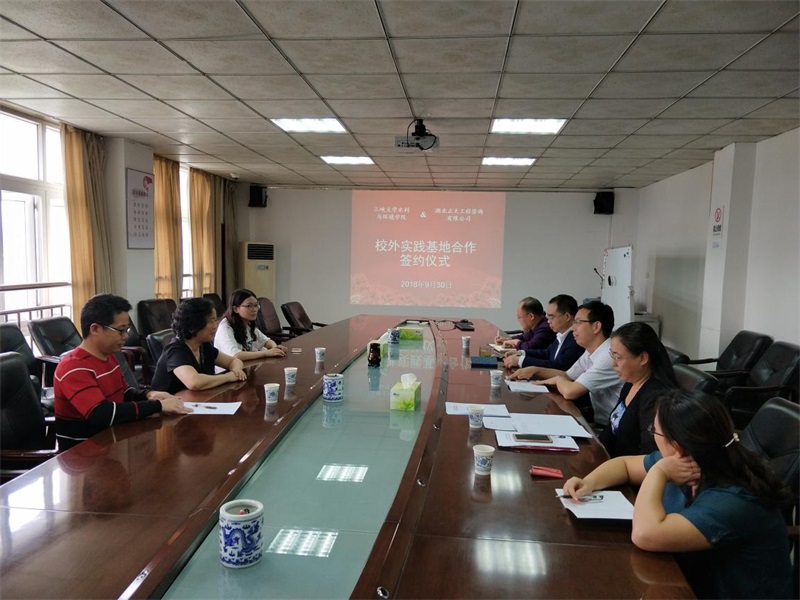 2018年9月30日,三峽大學水利與環境學院和我公司在三峽大學舉行校外實踐學習基地合作簽約儀式。三峽大學水利與環境學院副院長彭輝和董曉華、係主任黃建文、係副主任吳黎明、支部書記安慧、教學辦王蕾,我公司董事長陳清琳及相關部門負責人出席簽約儀式。
