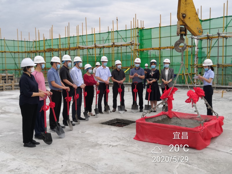 5月29日,陽光明媚,宜昌市中醫醫院門急診綜合大樓工程喜封金頂,中醫醫院舉行了隆重的慶祝儀式。市衛健委黨組書記顧昱、主任張瓊,宜昌市中醫醫院黨委書記周林峰、院長周剛、副院長段硯方,工會主席蔡燕、副院長譚春華,湖北廣盛建設集團總裁徐德紅、董事長匡玲,湖北合聯工程谘詢有限公司總經理鄭小濤,湖北正天工程谘詢有限公司董事長陳清琳等領導出席。