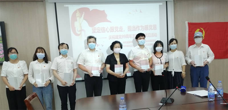 全體黨員麵對黨旗,重溫入黨誓詞,學習交流黨章。為六月入黨的8位黨員過政治生日,並為他們送上了“紅色書籍”。各ge黨dang支zhi部bu代dai表biao發fa表biao了le政zheng治zhi生sheng日ri感gan言yan,回hui顧gu入ru黨dang經jing曆li和he政zheng治zhi成cheng長chang中zhong的de工gong作zuo感gan悟wu,感gan恩en黨dang給gei他ta們men的de歸gui屬shu感gan,肩jian負fu黨dang賦fu予yu的de黨dang員yuan責ze任ren,發fa揮hui先xian鋒feng模mo範fan帶dai頭tou作zuo用yong。