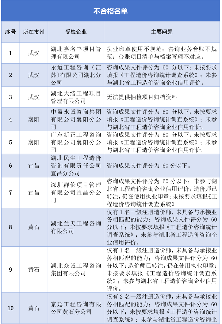 根據《關於印發〈湖北省工程造價谘詢企業信用評價管理辦法(試行)〉的通知》(鄂建設規〔2023〕3號)要求,檢查涉及到的企業及從業人員不良行為將納入信用管理。
