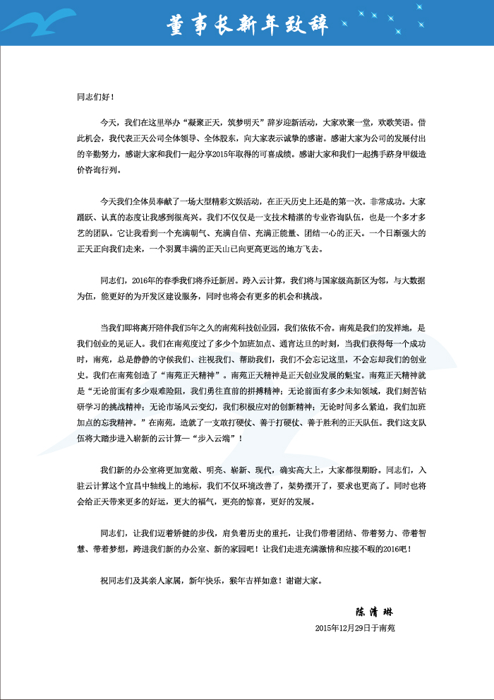 2016年新年致辭