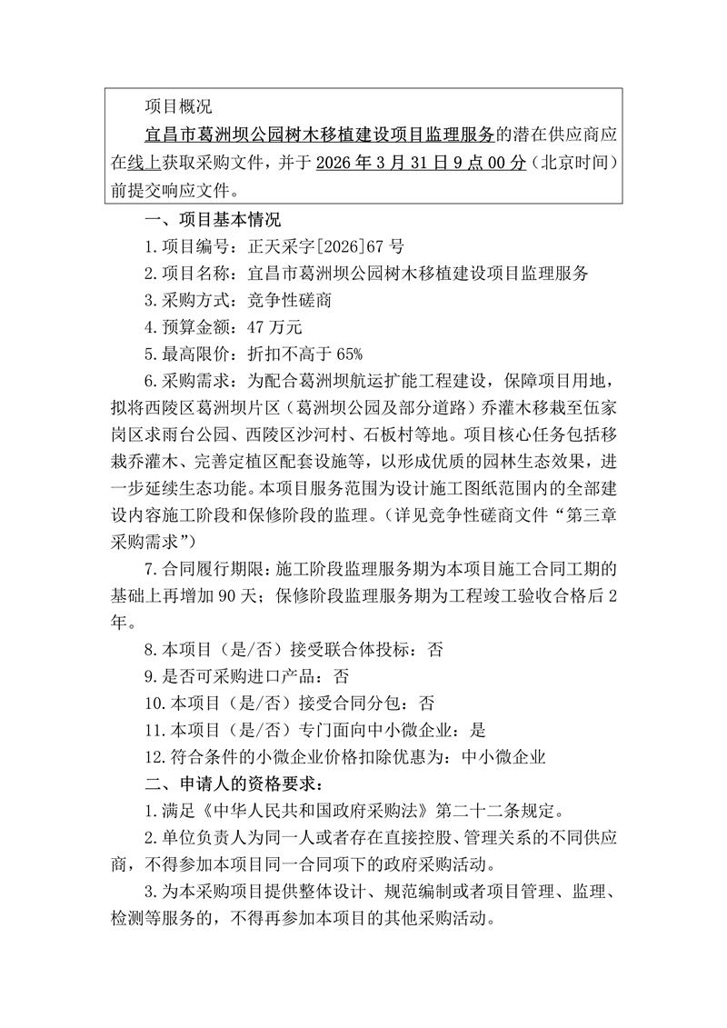 宜昌市葛洲壩公園樹木移植建設項目監理服務競爭性磋商公告